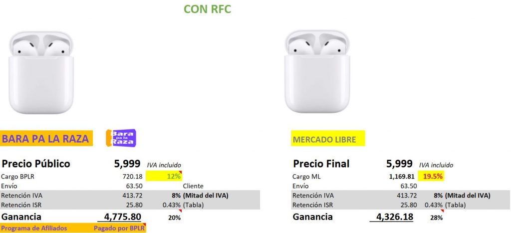 Si proveé su Constancia de Situación Fiscal y su INE en la solicitud de Vendedor o al correo contacto@barapalaraza.com con su RFC su retención será únicamente del 8% de ISR más .05% de IVA. Si no proveé dicha documentación, tendrá una retención del 30% de ISR, más 16% de IVA adicional con la finalidad de Trasladar el impuesto indicado en la ley fiscal mexicana.